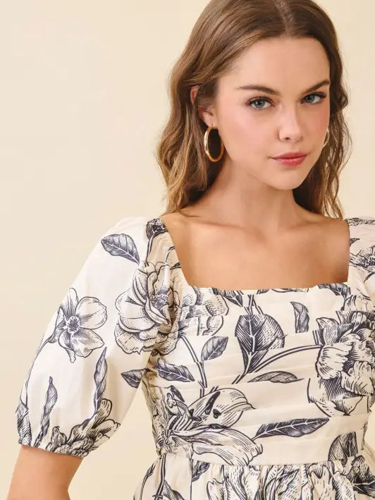 Floral Print Square Neck Ruched Bodice Top