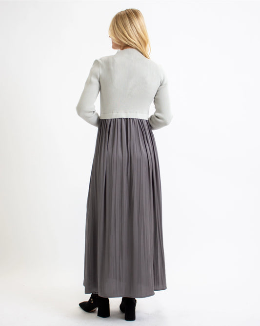 Caroline Mixed Media Maxi Dress - Grey